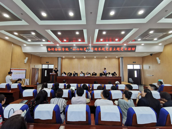 来自会计金融学院党总支教师第一党支部、教师第二党支部和学生党支部的9名选手参赛,比赛采用“学习强国”平台“挑战答题”“双人对战”的版块内容。比赛分为支部团体赛和个人循环赛两个环节,最终教师第二支部获得团体一等奖,教师第一支部于悦获得个人一等奖。比赛过程中,参赛选手精神饱满、斗志昂扬、应答迅速、配合默契、分秒必争,展示出丰富的知识储备和文化底蕴。现场气氛紧张激烈,整个比赛精彩纷呈,扣人心弦。台下观众热情高涨、掌声不断,都在为选手们加油鼓劲。竞赛题目涉及时事政治、文学知识、法律法规、历史文化、科普知识等方方面面,需要广博的知识面来支撑,党员教师们为取得好成绩利用早晚的业余时间认真学习,相互比较,真正让“要我学”变成了“我要学”,把学习作为一种追求、一种爱好,强有力地增强了学习效果。
