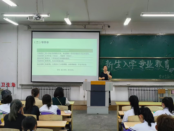 大数据与财务管理教研室主任杨鑫慧从学院发展、师资队伍、专业建设等方面进行了介绍,并针对课程体系设置、资格证书考取、顶岗实习、专升本和毕业后的就业进行了详细讲解。