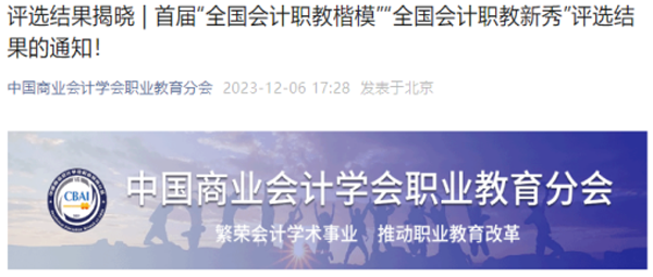 12月6日,在中国商业会计学会职业教育分会组织的首届“全国会计职教楷模”“全国会计职教新秀”评选活动中,会计金融学院教师王欢被评为全国首届“会计职教新秀”,全国职业院校共有10人获此殊荣。