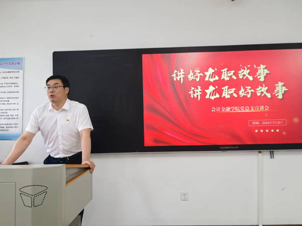 为落实立德树人根本任务,贯彻学校“文化铸校”战略,深入推进“铺路石”文化建设,弘扬榜样力量,营造崇尚师德、争创师德典型的良好校园环境和文化氛围,为建党103周年献礼,2024年7月3日我院开展了“讲好龙职故事,讲龙职好故事”宣讲活动。学校党委委员、副校长吴艳秋,学校党委委员、宣传统战部(教师工作部)部长杨东辉,宣传统战部教师工作科科长王湘玮出席活动,活动由党总支书记张振和主持,全体教师参加。