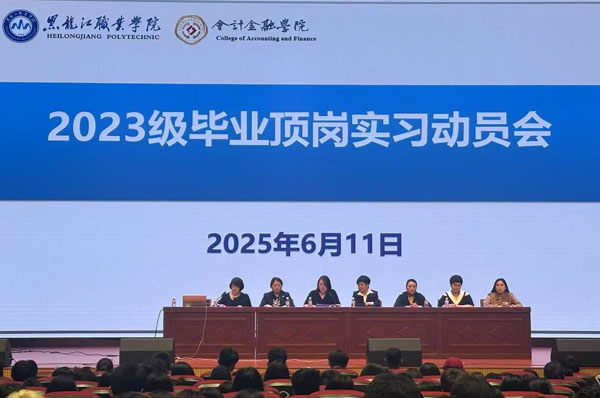 为助力2023级学生顺利开启实习征程,明确实习要求、熟悉操作流程,2025年6月11日下午13:30会计金融学院在工匠楼3楼礼堂隆重举行2023级毕业顶岗实习动员大会。学院领导、专业教师及实习合作单位嘉宾齐聚一堂,为学生实习保驾护航。