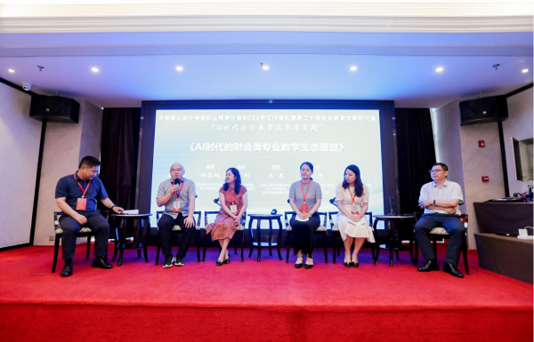 当日下午,张利院长参与了“AI时代的财会类专业教学生态重塑”圆桌讨论环节。面对AI技术给传统财会教育带来的巨大冲击与全新机遇,张利院长结合会计金融学院教学改革的创新与突破及行业发展趋势,进行了经验分享及对AI背景下,财会专业建设的展望。她指出,财会专业教育必须主动拥抱AI技术,将其融入到教学改革的各个方面,要着重培养学生的数据分析、智能决策等新型能力,以适应行业变革需求。除张利院长外,其他与会专家也围绕会议主题展开深入讨论。