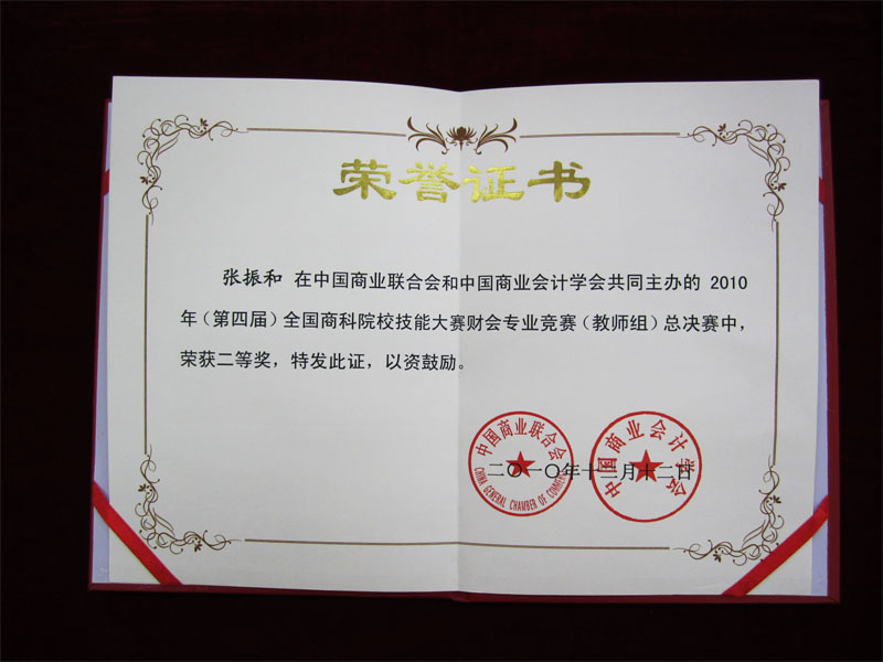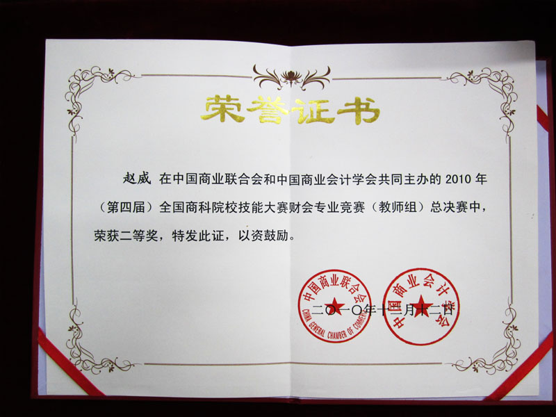 此外,经过大赛组委会层层筛选,我院闫晓波老师被选为大赛评委委员,参加了大赛全部评比工作。鉴于我院在此次大赛的优异表现,被大赛组委会授予“最佳院校组织奖”和“全国商科教育财会专业教学最佳组织奖”。我院是惟一一家获得两项大奖的院校。