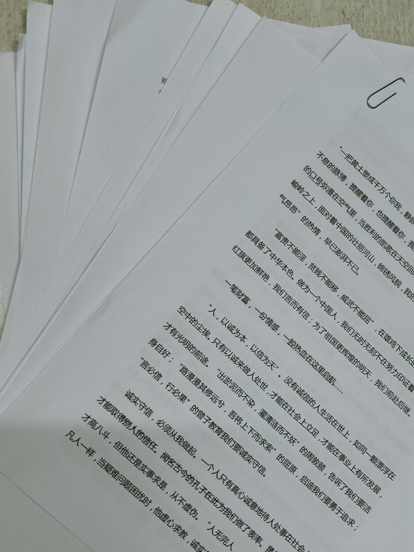 为了让同学们了解诚信的重要性,增强诚信意识树立同学们诚信品质,营造校园诚信风气,我院于2019年6月16日在清华楼举行以“诚信”主题征文活动。