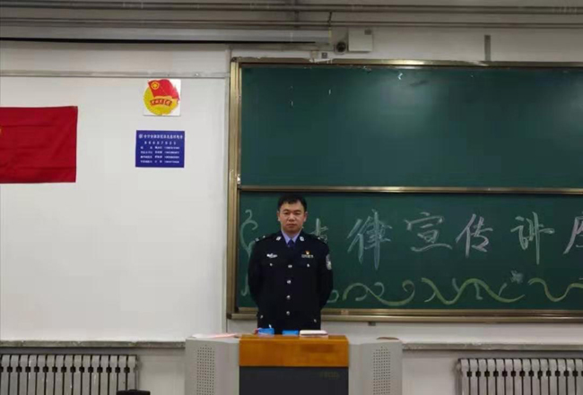 本次讲座特别邀请了新建监狱监区中队长徐新明警官,徐警官首先就一些基本法律知识与同学们进行了交流与互动活动,向同学们讲解了法律在生活中的作用。通过理论联系案例的方式,运用生动鲜活的案例和幽默风趣的语言为同学们讲解了当前同学们违法犯罪的现状、特点和成因。重点介绍了同学们应该如何遵纪守法,远离不良行为一些基本的方法和策略,最后徐警官向同学们介绍了如何自我保护,学会在困难中自救的基本方法,具有很强的针对性。