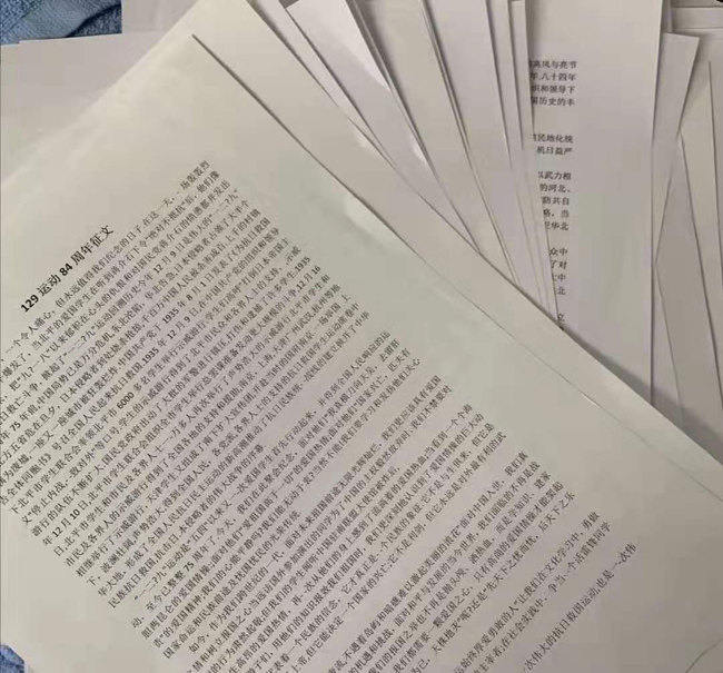 古有青年振臂高呼,救国于水火。今有青年风华正茂,爱国当己任。为了纪念摄人心魄的“129”运动84周年,加强同学们对过去的铭记与怀念,进一步弘扬同学们的爱国主义精神,增强同学们的民族自信心和历史使命感,继承和弘扬“129”运动的爱国主义精神,共同筑造一个充满良好精神文化氛围的校园环境。我院组织部于2019年12月6日在清华楼主楼举办一场以缅怀“129”为主题的征文活动比赛。