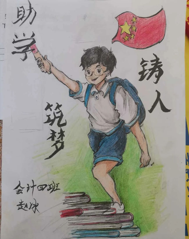 各班班长组织同学们开展“助学·筑梦·铸才”学生书法等作品征集活动。