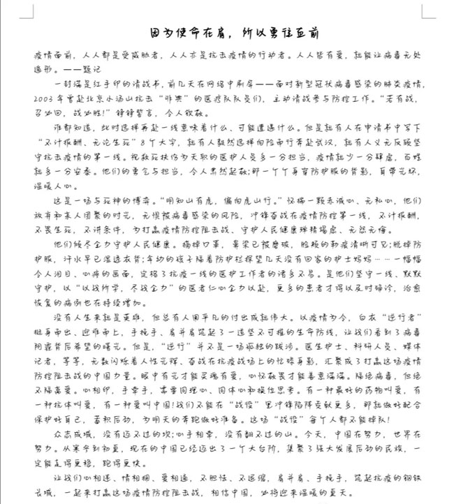 通过此次活动,引导我院全体同学们众志成城,共同战疫,为坚决打赢疫情防控贡献自己的力量,作为学生我们要把这次疫情当作是一种学习机会,去学习一线战斗人员敢于拼搏、勇于奉献、舍己为人的精神。让我们一起打赢这场战役,等待着“花开”的到来。