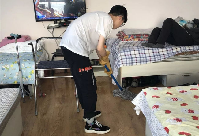 上午八点,由我院12名大学生组建的志愿者队伍在校园内人才山旁集合,在会计金融学院青协部部长黄靓的带领下,大家通过乘车的方式向哈尔滨市万福康年敬老院出发,不久便到达了活动目的地。在院长的介绍下,同学们了解了在这里居住时间最长的老人已经达到了五六年,时间较短的也有几个月了。在受到关怀的程度也是分两极化,大多数的老人都会经常受到儿女的探望,但也有极少的一部分老人,连儿女小小的一个电话也接不到。在这居住的老人们都多才多艺,日常的生活以下棋、跳舞、看书、唱歌为主,随后同学们又通过帮老人们打扫房间、聊天等方式拉近了与老人们的距离,使老人们更好地感受到了同学们的关怀。最后同学们在敬老院门口拍照留念,本次的活动便就此落下帷幕。