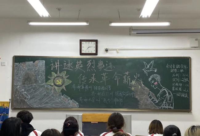 活动开始前,各班班委积极配合,积极准备了主题板报和相关资料,同学们积极准备相关的红色故事诵读。重温英烈事迹,讲英雄故事、重温入党(团)誓词、引导学生抒发爱国情怀,传承革命薪火。让同学们积极充分了解历史,对革命有了一个新的概念。并且我院还通过网上扫祭 ,呼吁同学网络文明祭扫、充分利用网络平台、通过鲜花追悼、丝带祭祀、缅怀寄语等方式,引导同学以文明、环保、节俭、安全的方式寄托哀思。