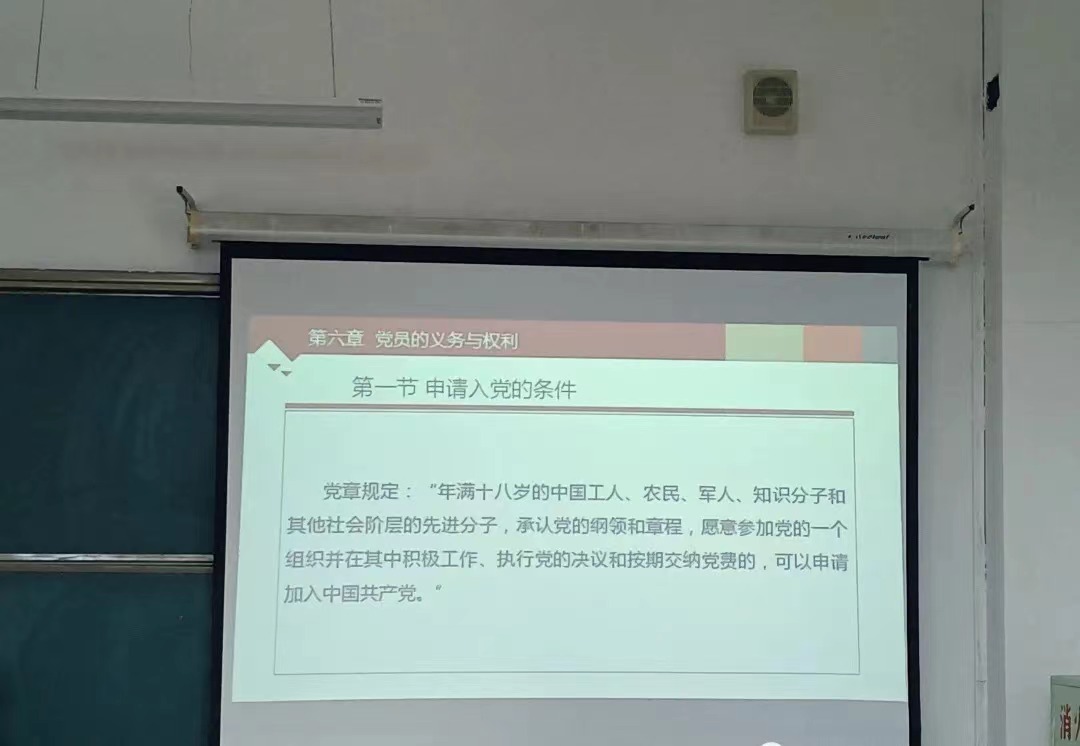 本次党课第三期主讲老师为学管党支部纪检委员白晓天老师授课内容为全面提高党的建设科学化水平、中国共产党党员的条件、义务和权力。