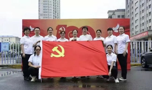 在建党百年之际,会计金融学院党总支全体党员佩戴党徽,在党旗下重温入党誓词,与党旗合影,向党深情告白。