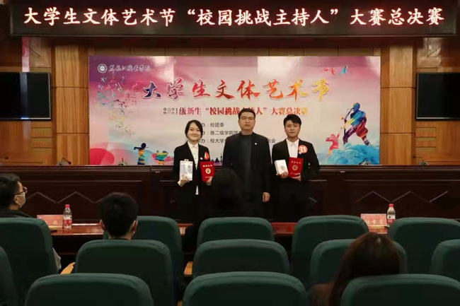 “张扬青春魅力,主持我的精彩”,为进一步推动我院大学生的文化建设,培养同学们的语言表达能力和丰富同学们的舞台经验,2021年11月29日晚6时,大学生文体艺术节“校园主持人”大赛决赛在清华楼9楼经济报告厅隆重举行。