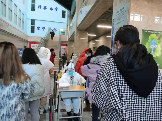 近日,疫情形势严峻。为加强疫情防控工作,快速准确掌握学生和教职工群体的健康状况,永利官网于2021年12月8日在清华楼、工匠楼组织开展第三次全校师生核酸检测工作。