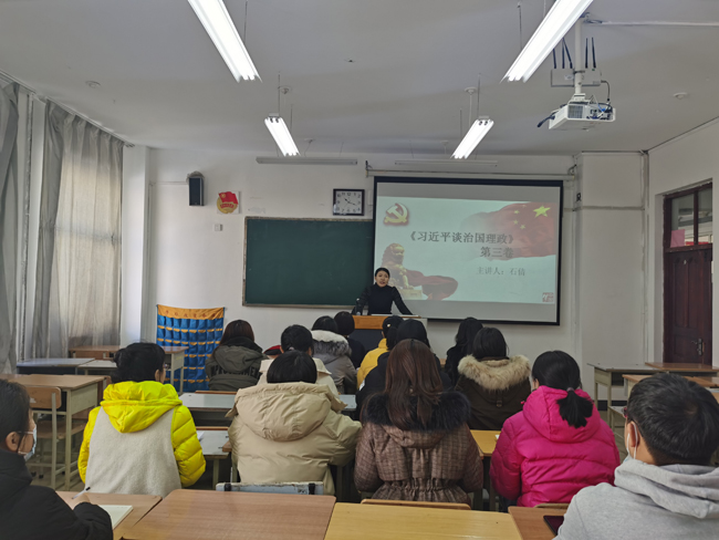 11月27日上午,会计金融学院党总支副书记、学管党支部书记石倩为学管支部全体党员上党课。