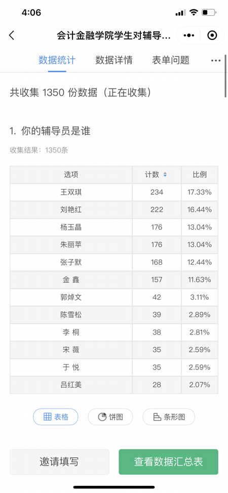为了更好的倾听同学们的心声,更充实、更有保障、更可持续的为同学们办实事。学管党支部自4月21日起开始筹备,每班抽取学生干部和普通同学各3人作为学生代表,对辅导员的工作做法、工作态度、希望辅导员改进的方向、学生日常关切的问题进行广泛留言。4月26日支部对学生留言反映的意见建议认真全面梳理,根据汇总的32个问题设计符合实际情况的调查问卷共24项,并推送给1447名在校学生。4月28日,收回学生问卷1350份,同时召开辅导员工作“认领会”,辅导员对于调查问卷中学生反映的问题进行认领并答复。4月29日召开学生座谈会,党总支副书记,学管副院长石倩与117名学生代表面对面对接,直面学生问题,对于学生反应的急盼愁难问题逐一进行解答。学生会主席刘旭野同学对学生反应的学生干部作风问题做出郑重承诺:学生提出的建议全部采纳,以后绝不会出现滥用职权、执法不公等现象,始终牢记服务理念,本着为同学服好务,配合好老师工作的思想,共同创建美好学院。