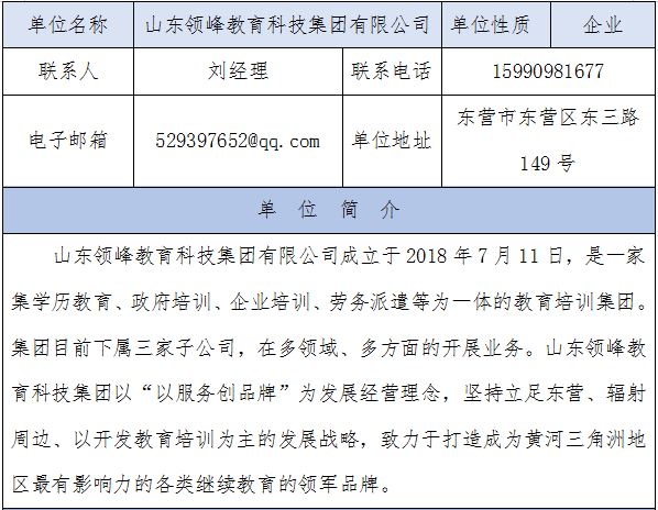 二、山东领峰教育科技集团有限公司岗位信息表