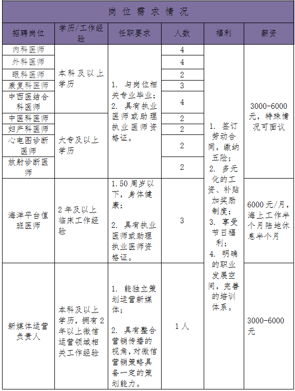 六、东营中医医院岗位信息表