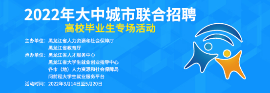 冬雪消融,芳华待放。在即将到来的毕业季里,请岁月为我们谱写辞藻,让我们的青春不散场;与青春一起洋溢平仄,我们意气风发正待时。云帆已挂,青衿当行。自带锋芒的青年,从来无畏前路,穿越人海的我们,因逐梦在此携手。由黑龙江省人力资源和社会保障厅联合黑龙江省教育厅主办,问前程大学生就业服务平台承办的——2022年大中城市联合招聘高校毕业生专场活动,即日起举行。问前程大学生就业服务平台联合八大就业专区名企向您发出诚挚的邀请,去遇见一场青春的极致绽放,做最自由的梦,追逐最闪耀的人生,在这个春天遇见最好的你!