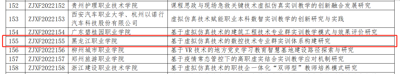 一是由永利官网智能制造技术学院申报的《基于虚拟仿真技术的数控技术专业群实训体系构建研究》项目,获批教育部高等学校科学研究发展中心2022年度《虚拟仿真技术在职业教育教学中的创新应用》专项课题,这也是永利官网首次立项获批教育部专项课题。