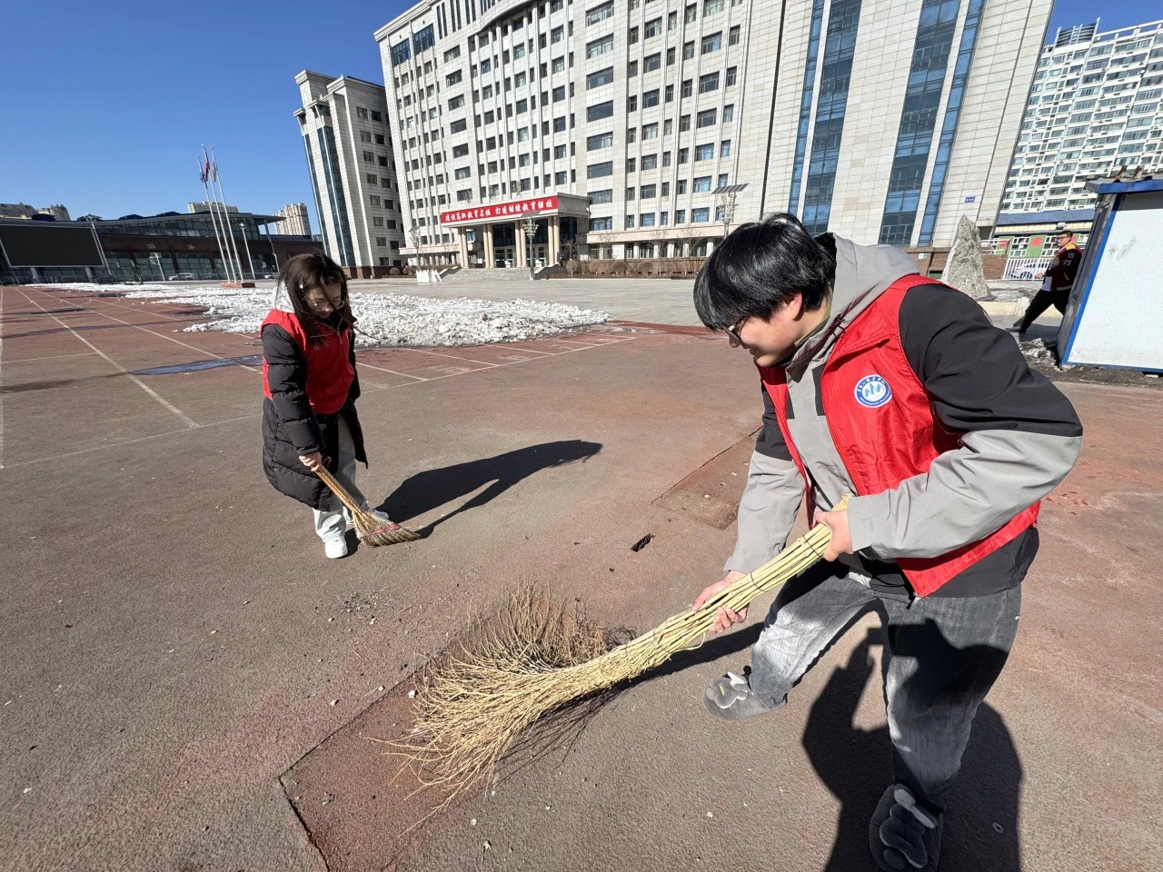 活动中,志愿者们先在校园清华楼操场集合,明确分工后分组开展卫生清理工作,让操场变得干净整洁;随后前往校园图书馆,将书籍分类归位、擦拭书柜,为师生营造了良好的阅读环境。这两项校内活动,展现了同学们积极为校园服务的热情