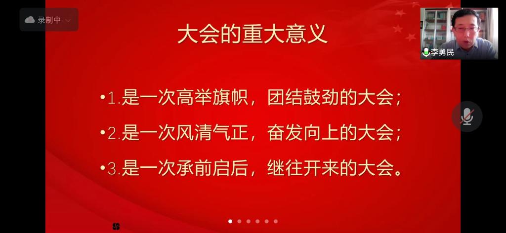 李勇民书记分别从省第十三次党代表大会简介、报告解读、报告具体内容三个方面详细全面的对省第十三次党代表大会报告精神进行了传达。