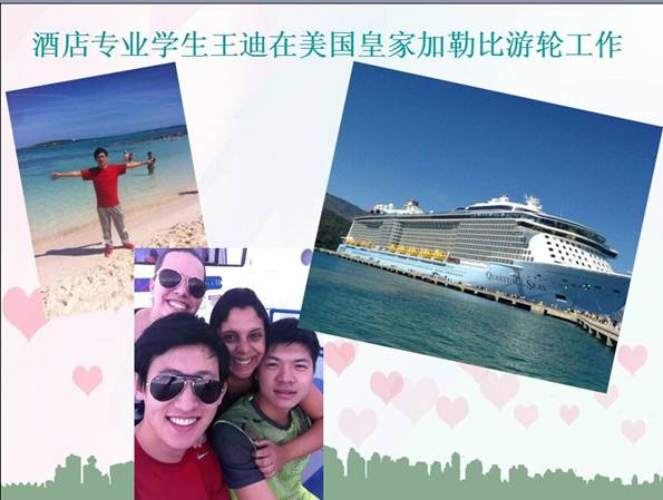 皇家加勒比邮轮公司是全球第二大邮轮运营商,总部在美国迈阿密。2014-2015年,美国皇家加勒比邮轮到我院选择实习学生,我院共有11名专业学生入选,期中,这11人在美国迈阿密登船,并在欧洲航线进行实习,实习月收入在8000-15000元不等,毕业后学生的月收入平均为15000-20000余元。鉴于就业学生表现优异,2016年,皇家加勒比邮轮公司再次来到我院进行招聘,此次共录取25名学生,将于6月底,7月初进入加勒比培训中心进行岗前培训。不久的将来,这些酒店管理专业的学生就将放飞梦想,遨游于世界各地,实现高端就业。