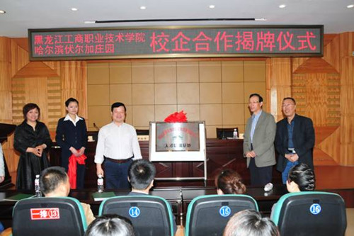 2011年5月24日是一个明媚的日子,旅游与人文艺术学院与风景如画的哈尔滨伏尔加庄园在我院举行了隆重的校企合作揭牌仪式。出席本次揭牌仪式的有黑龙江工商职业技术学院刘公远副院长、旅游与人文艺术学院邓剑平院长、哈尔滨伏尔加庄园董事长黄祖祥先生、东建集团企划部经理王占君先生等。揭牌仪式由旅游与人文艺术学院李勇民副院长主持。