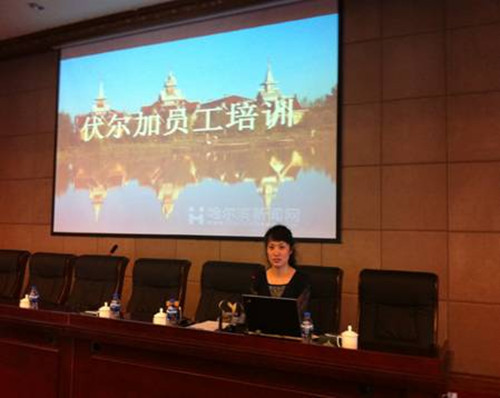 揭牌仪式第二天开始,我院教师就对伏尔加庄园的员工进行了礼仪礼貌等方面的为期6天的培训,效果良好。经双方协定这种培训还会每月在伏尔加庄园进行,将校企合作踏踏实实落到实处,真正的做到为地方经济服务,提高旅游专业的社会服务功能,开拓校企合作的深度与广度。
