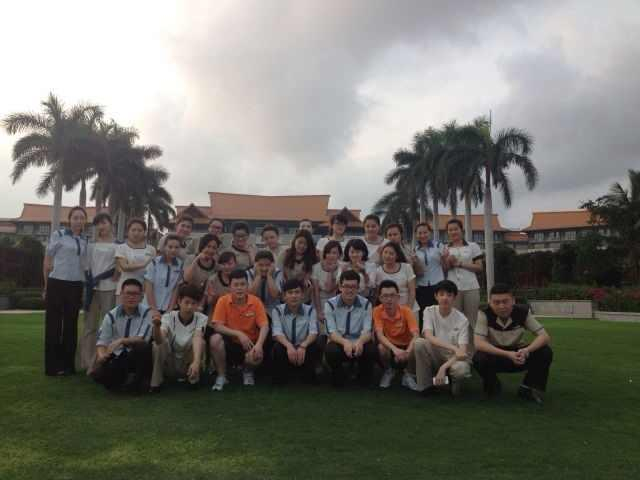 2014年4月6日,我院李庆苏教师带领29名学生抵达三亚海棠湾万丽酒店,酒店热情的接待了抵达的教师和同学们。同学们也对三亚富有特色人文和海岛风情产生了极大的兴趣,员工和实习生的住宿条件和餐饮条件也非常优越,更激发了学习和工作的热情。为期一周的入 职培训结束后,同学们被分配到前厅、客房、餐饮进行实习,开始为接待世界旅游旅行大会做准备。