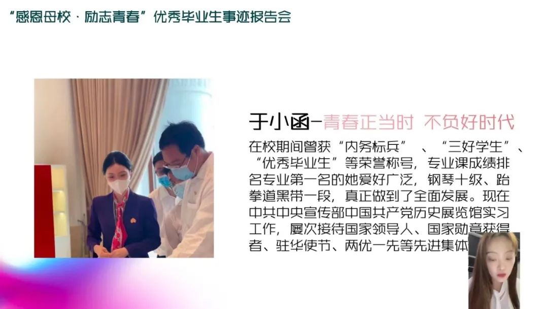 本次优秀毕业生事迹报告会观看人数达690余人,点赞数近2万。通过本次会议,让2020级和2021级同学对学习技巧和就业方向有了更加清晰明确的认识,通过借鉴学哥、学姐们的成功经验,进一步坚定信心,为未来做好规划,扬帆远航,行稳致远,传承和弘扬“自强 有为 兴业 报国”的优秀品格,为国家发展、民族振兴贡献自己的一份力量。