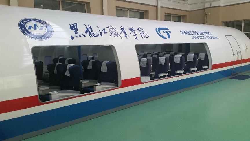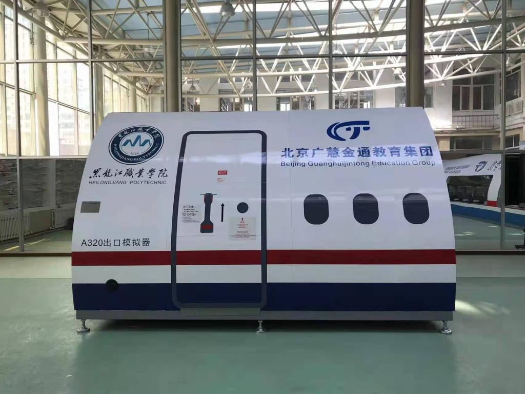 学校建有航空实训中心,总占地面积1200平方米,是投入400余万元建立的集模拟训练舱、机模展示厅、形体训练室、形象设计室为一体的多功能教学场所,其中波音737-800/空客A320综合训练舱长14.72,3.95,2.78,自重空载12,满载48,头等舱8个座位,经济舱36个座位,乘务员座椅前后各2个座位,充分具备客舱设备理论学习,客舱服务模拟训练,乘务员控制面板操作、客舱失密使用氧气面罩训练等19项辅助功能。航空实训中心同时配备B737-800/A320舱门训练器、民航值机安检等实训设备进行多元化系统型教学,对提高空乘专业学生的综合素质发挥着重要作用。
