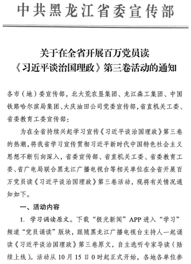 关于在全省开展百万党员读《习近平谈治国理政》第三卷活动的通知