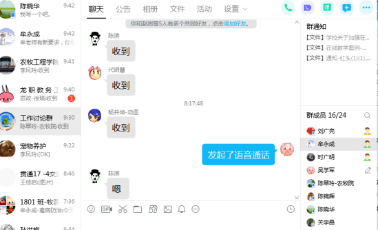 4月9日上午,按学校教学工作安排,农牧工程学院组织召开了在线教学研讨会。会议通过QQ语音会议形式召开,院长陈晓华、教学副院长吴学军、教学办主任牟永成和各教研室主任参加会议。会议围绕前段线上教学取得的经验和存在的问题进行了研讨,各位室主任积极发言,对在线教学质量提升起到了良好促进作用。