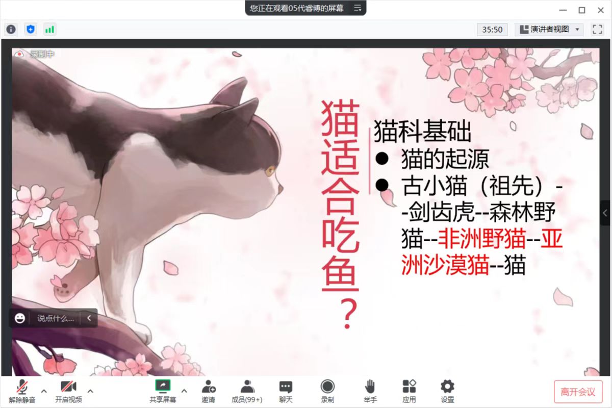 2023年3月1日晚6点,第五届农牧工程学院动物临床诊疗协会开展了本学期的首次活动——入会第一课与猫科。协会骨干成员在孙洪梅老师指导下,经过几次研讨,完成了活动策划,通过腾讯会议进行直播,孙老师和208名同学参加了此次活动。