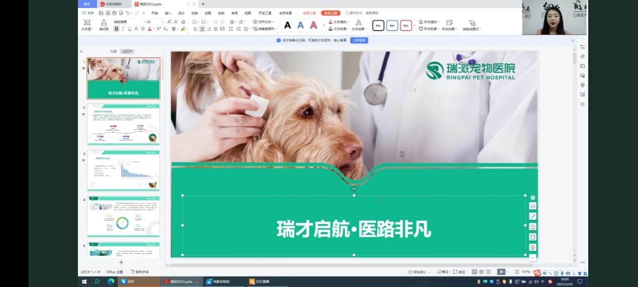本次活动通过线上的方式进行。专家讲堂的主讲教师是瑞派东贝管理公司人事行政助理总监李梦莹老师。李老师以《瑞才启航·医路非凡》为主题,从宠物医疗行业的追溯起源、放眼现状、展望未来三个方面,介绍了宠物医疗行业的发展,并帮助同学们设计了职业发展规划,并与学生进行了线上的交流。