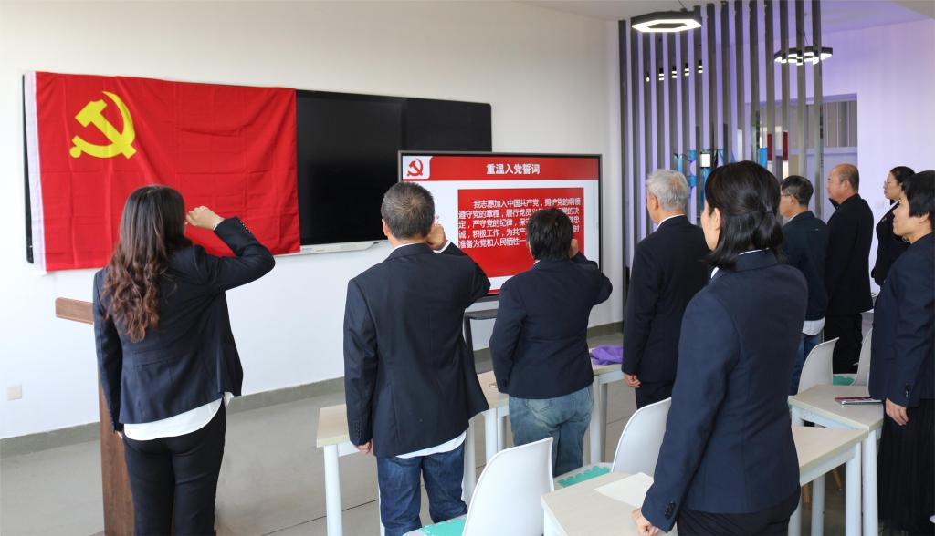 国庆前,牧苑里,党旗映丹心,誓言表决心。支部党员齐聚起立,面对鲜红的党旗,举起右手,再次庄严宣誓。通过重温入党誓词,再一次体会到了作为一名共产党员的责任感和使命感,牢记党的理想和目标,在教师岗位上充分发挥先锋模范作用,以昂扬的士气、进取的心态和创先争优的精神践行入党誓词,不断追随党的步伐,以更加饱满的热情永葆共产党的政治本色。