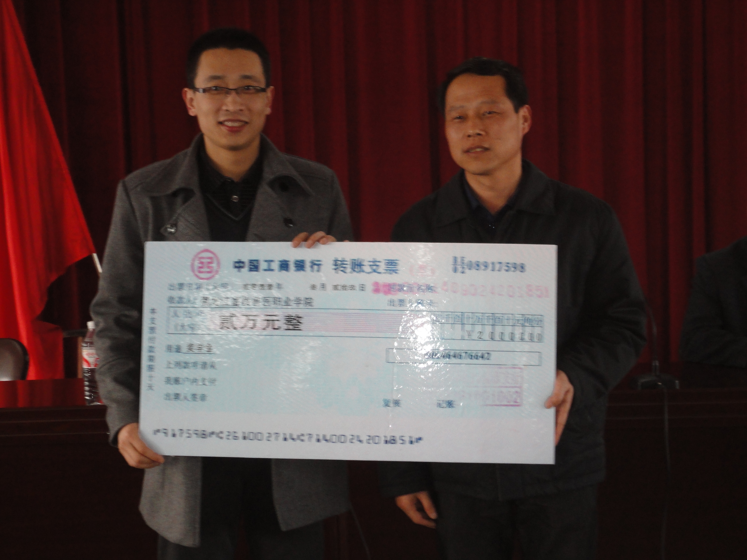 辉山集团人力资源总监王特和永利官网纪检委书记孙福忠分别代表辉山集团和黑龙江科技职业学院签订了“辉山集团奖学金”协议书。根据双方协议,辉山集团在永利官网设立“辉山集团奖学金”,每年2万元,奖励我院家庭困难成绩优异,积极向上的同学。