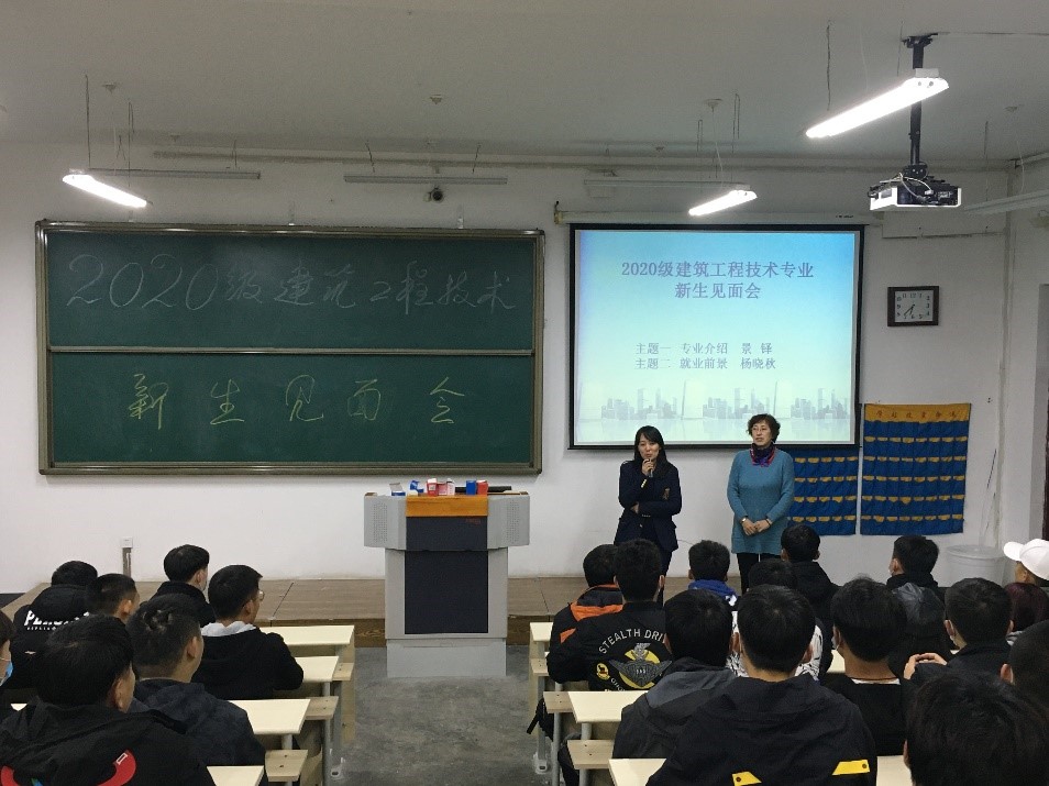 2020年10月15日下午18点30分,2020级新生专业介绍会在清华楼西J202准时开始。由建筑工程技术专业负责人景铎老师和企业专家杨晓秋作为主讲人。全体建筑工程技术专业大一新生和辅导员李鉴奇老师参加了介绍会。