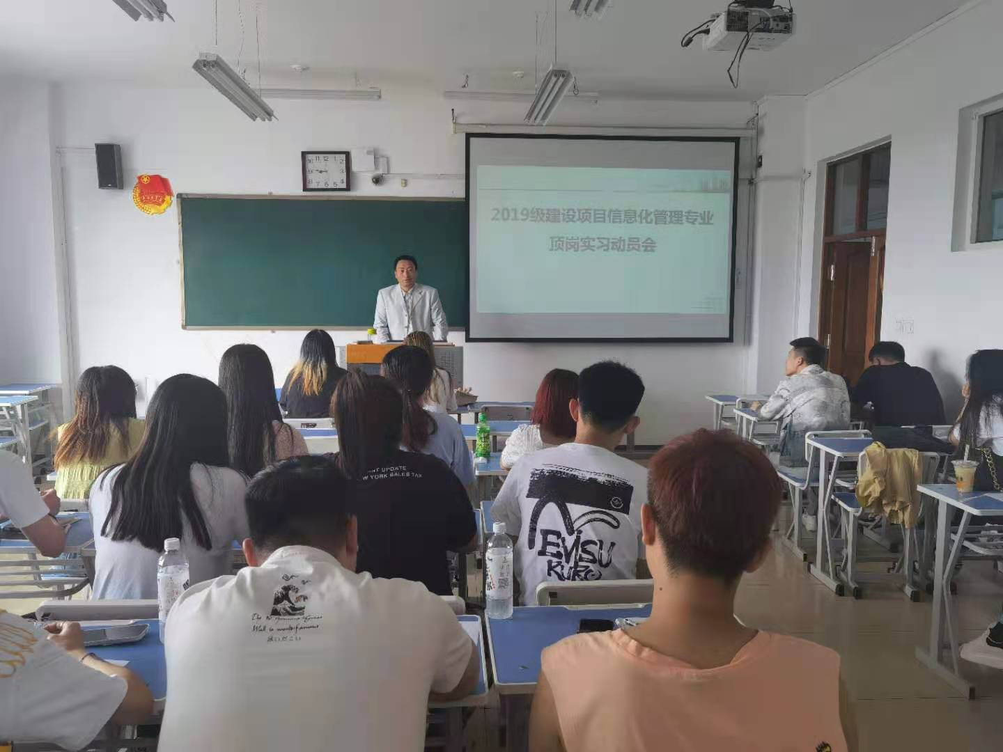 为落实建设项目信息化管理专业顶岗实习工作,建设项目信息化管理专业于6月11日上午在清华楼711教室召开2019级学生顶岗实习动员大会。建筑工程学院书记程刚、建设项目信息化管理专业教研室主任郝建涛、辅导员杨天伦及2019级全体建设项目信息化管理专业学生参加此次大会。