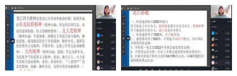 同时引出对冬奥冠军的介绍,特别是我们黑龙江的奥运冠军任子威、武大靖、高亭宇等人在本次冬奥会中的出色表现,进而向同学讲解什么是龙江四大精神。面对疫情反复,我们中国人民、特别是黑龙江人民不认输、不服输,奥运精神和龙江精神就是我们的支撑,也是我们的真实写照,相信这次我们也同样能渡过难关。通过这些思政元素的融入,增加学生的民族自豪感和爱国情怀。鼓舞大家在家也要以饱满的热情上好每一堂课,这也是我们当代大学生为国家抗疫所做的贡献。