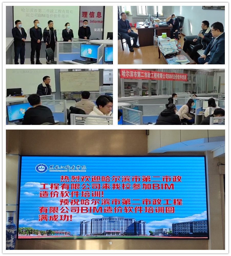 范海波书记进行培训活动开班致辞,她介绍了BIM造价软件培训的基本情况、强调学校对校企培训的重视,希望与企业建立更加完善的培训机制,有针对性的为企业、社会培养更多优秀人才,达到企业员工、学校和企业多方共赢。加强建筑工程学院与哈尔滨市第二市政工程有限公司合作,为学生争取更多更好更适合的顶岗实习岗位,为企业举行更多的专业技能提升培训活动。总工程师魏赢表示造价软件培训活动对于企业造价人员技术提升十分重要,希望与建筑工程学院增强合作。