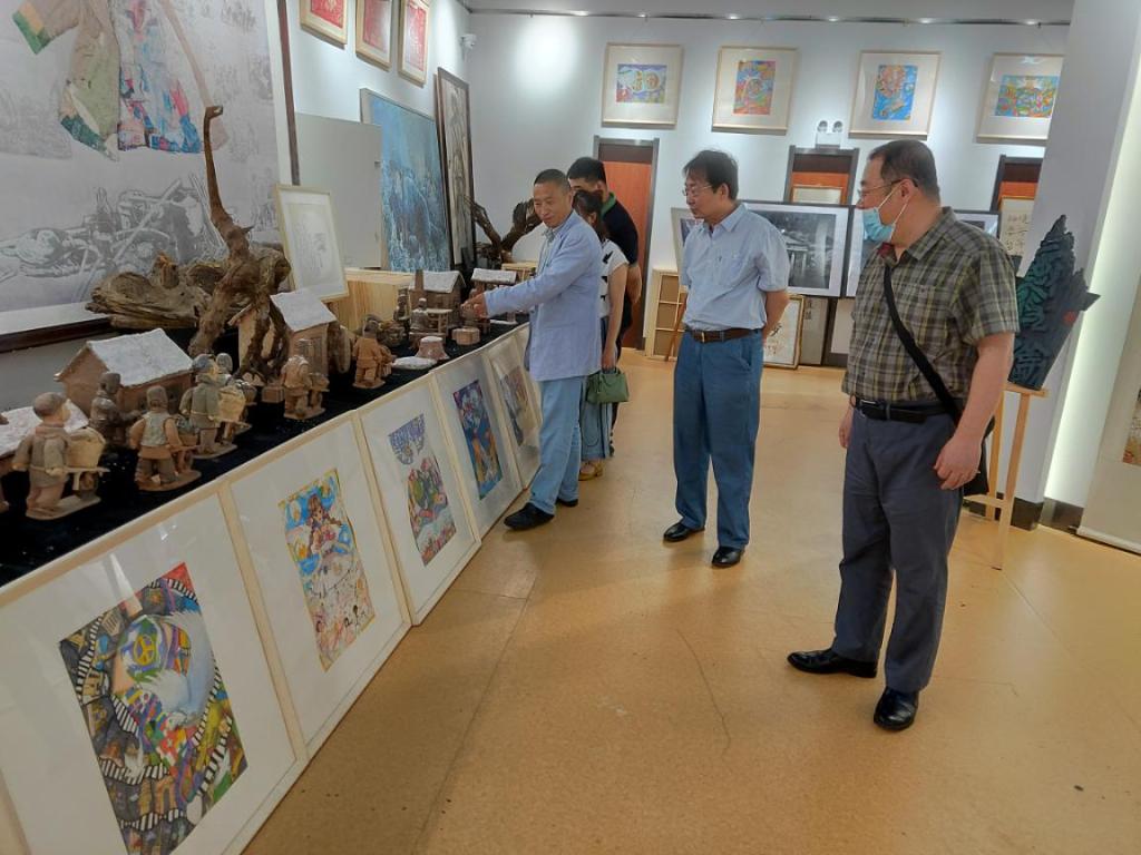 哈尔滨学院艺术与设计学院学工办主任郭鹏程为大家介绍了黑龙江“四大精神”文创展览馆的特色是用文创作品来记录历史、弘扬文化、实现教育功能,并对展出的文创作品分区块进行了详细讲解。展馆内所有的作品都是为了对抗遗忘,一件件作品通过不同艺术形式生动地展示着在党的领导下,黑龙江人民在革命、建设等不同历史时期,坚定崇高信仰,开拓进取,艰苦奋斗,形成了以“四大精神”为代表的黑龙江优秀精神。
