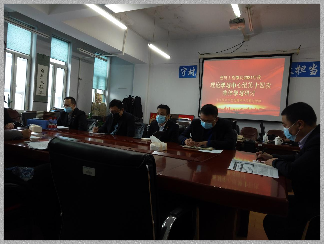 11月30日上午,建筑工程学院党总支理论学习中心组在学院1117会议室召开集体学习会,专题学习党的十九届六中全会精神,并联系思想和个人工作实际开展交流研讨。学院党总支书记程刚主持学习会。学院理论学习中心组成员范海波、张皓、任利军、英鹏程、林泉、张钧铭、宋海江、那泽龙等围绕党的百年奋斗重大成就和历史经验,学习贯彻党的十九届六中全会精神,结合分管工作做交流研讨。