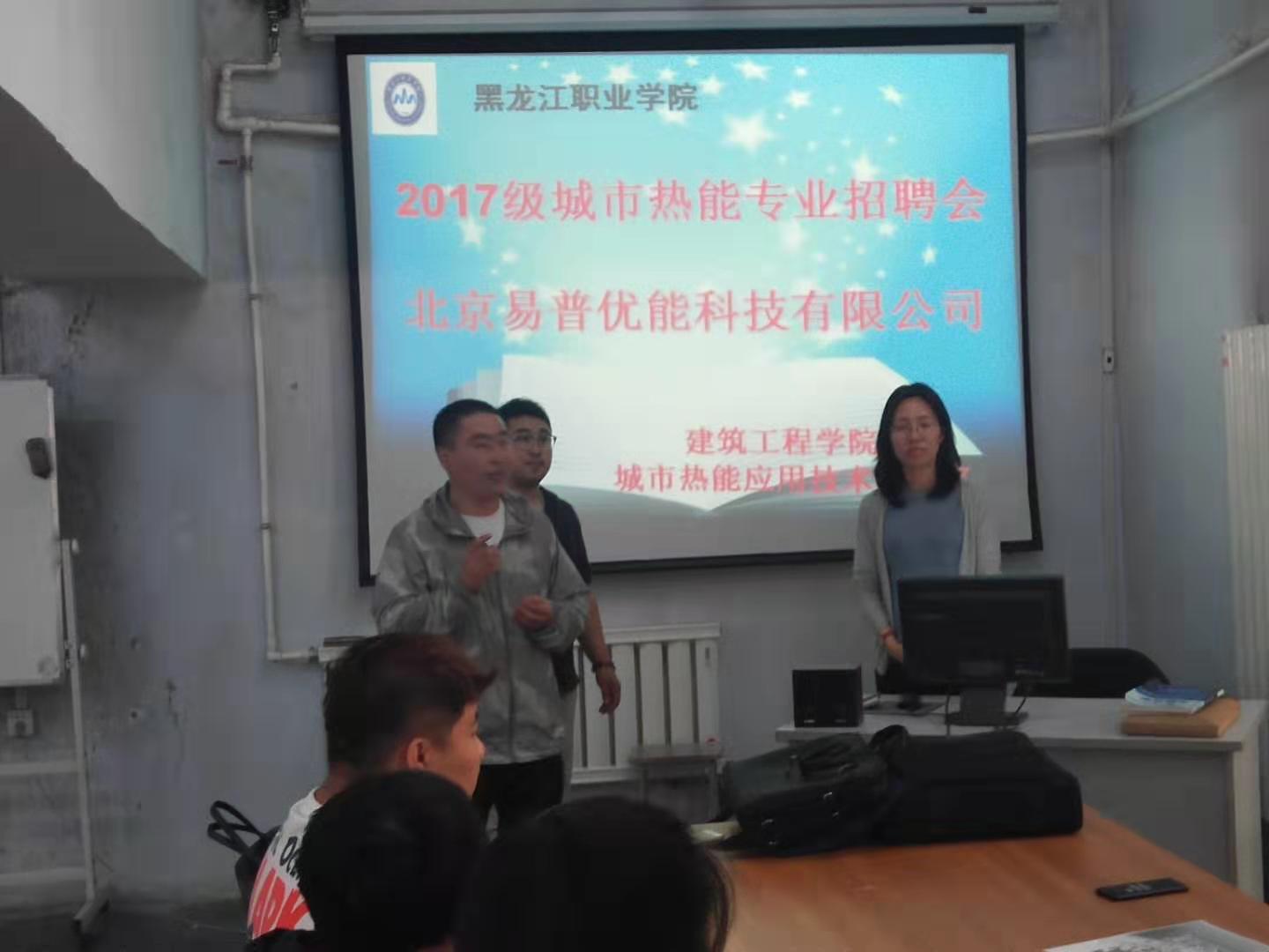 613北京易普优能科技有限公司一行举行专场招聘会,双方校企合作事宜进行了深入交流,范海波院长易普优能公司介绍了热能专业国家现代学徒制试点专业建设和2017级热能专业学生的在校学习情况,范海波详细介绍了国家高职院校扩招100万相关政策,并与易普优能人力资源部何经理初步达成热能专业将为企业员工培训等事宜,何经理表示范海波院长对2017级热能专业学生顶岗实习工作的高度重视深表敬意,愿意与建筑工程学院保持长期合作,在合适时间愿意与热能专业签订现代学徒制班多为企业培养合格人才。
