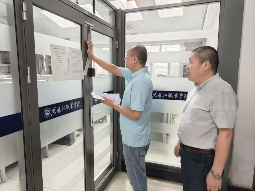为确保暑假校园安全稳定,2025 年 7 月 2 日上午,建筑工程学院开展了实训室、办公室,安全检查工作。此次检查由工程造价教研室主任郝建涛老师牵头,综合办主任任利军,实训团队李龙、王英齐共同参与,全面深入地排查各类安全隐患。