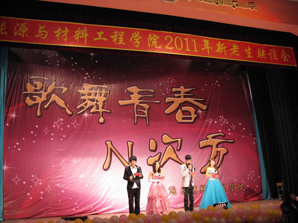 2011年11月16日下午13时,能源与材料工程学院举办了以“歌舞青春N次方”为主题的新老生联谊会,莅临此次联谊会嘉宾和领导有学院常务副院长何承贵、副院长刘公远、纪委书记周莲香、院长助理王明海、组织部部长孔繁海、监察审计处处长高海英、人事处处长夏慧君、财务处处长吴艳秋、教务处处长张玲、培训学院院长付万杰、校园文化部主任杨树枫、科研处处长尚久悦、老干部处处长郝卫国、校园文化部副主任陈宇辉、成教学院副院长杜伟杰、旅游学院刘波教授。参加本次联谊会的还有能材学院领导班子成员及全体教师、辅导员和能材学院10、11级全体学生和部分09级学生。并且,其他兄弟二级学院也有很多学生到现场观看了此次联谊会。