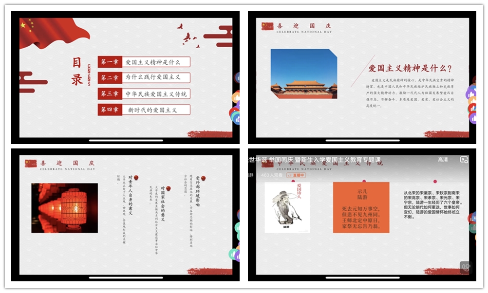 爱国主义是我们中华民族的传统美德,是中国人民和中华民族维护民族独立和民族尊严的强大精神动力。为引导我院学生树立正确的爱国主义观念,学习爱国主义精神内涵,10月4日下午18点,建筑工程学院辅导员刘静作为主讲老师为全体22级新生开展了“盛世华诞 举国同庆——暨新生入学爱国主义教育专题课 ”。