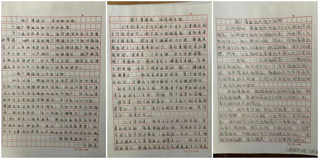 本次主题宣传活动,建筑工程学院紧紧围绕“推广普通话 奋进新征程”的主题,以习近平新时代中国特色社会主义思想为指导,深入学习宣传贯彻党的二十大精神, 通过语言文字规范培训,经典诵读,诗词讲解,书法展示,爱国主义电影配音等多种内容丰富、特色鲜明的语言文化实践形式进行开展,形成了浓郁的学习氛围,取得了显著的推普效果。