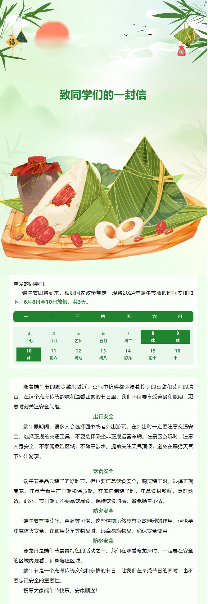 建筑工程学院致同学们的一封信(端午篇)